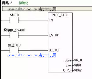 PTO0_CTRL在程序中只使用一次,并且在每次掃描時得到執行,所以使用SM0.0作為EN的輸入。