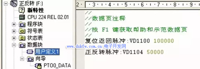 3、復位VD1100:復位返回脈沖數,在數據塊的“用戶定義1”進行設置。根據電機的減速比和驅動器的細分以及電機行程設置。