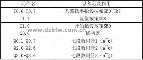 搶答器控制系統分5部分:PLC、搶答按鈕、音響電路和顯示部分,它利用搶答按鈕輸入各路的搶答信號,經PLC處理,輸出控制信號,控制數碼管和音響提示電路工作。