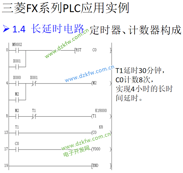 三菱PLC定時器、計數器構成的長延時電路梯形圖程序
