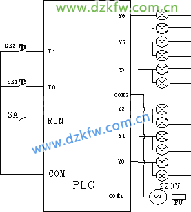 可編程控制器的輸入 / 輸出端子分配及硬件連接分別由表 1 及圖 2 所示。其中 SA 開關代表可編程控制器自身的運行開關。
