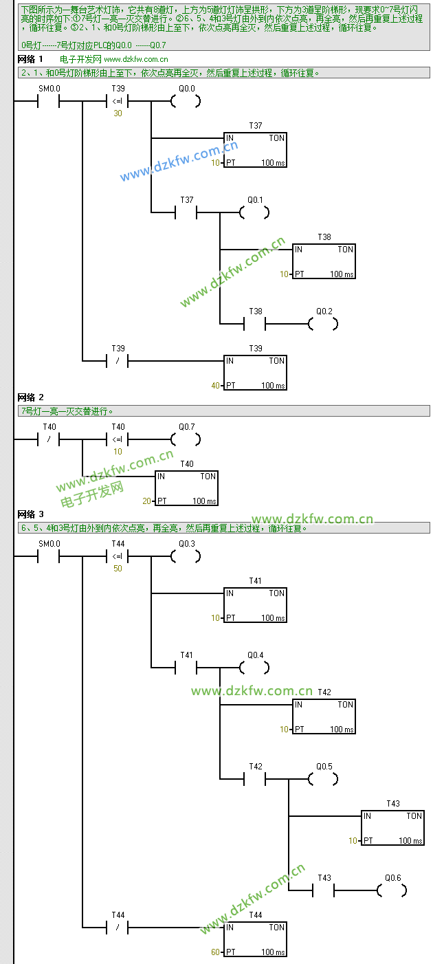 // 0號(hào)燈-------7號(hào)燈對(duì)應(yīng)PLC的Q0.0 -------Q0.7