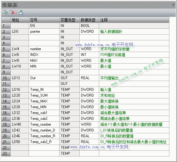 二、AVG_MAX_MIN指令庫編寫重復調用的庫,需要變量建立的正確,否則多次調用無法正常運行,如果你這邊對建立庫不太會,你這邊可以先去看一下這方面的課程學習一下,對于指針指令不太熟悉的可以看看小編前面寫的文章《西門子S7-200smart間接尋址的使用方法》
