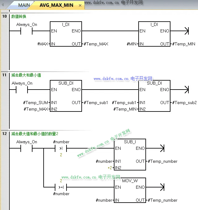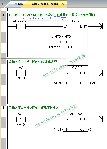AVG_MAX_MIN子程序每一段程序都有注釋講解,如圖3至圖7所示,這里不做介紹,如果有問題可以留言。