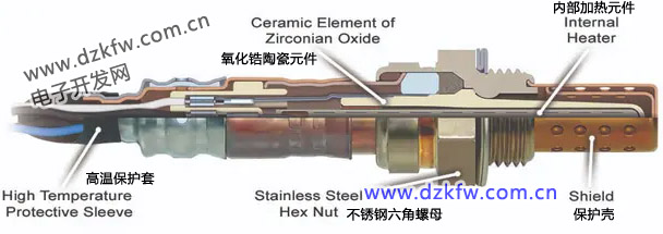 第一個版本是采用外殼接地作為傳感器信號的三線傳感器,后來的應用采用了我們大家最常見的帶有隔離接地的四線版本加熱型氧傳感器。