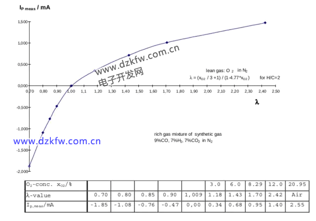 實際 lambda 值是通過檢測泵單元 I p所需的電流并使用制造商提供的查找表得出的。
