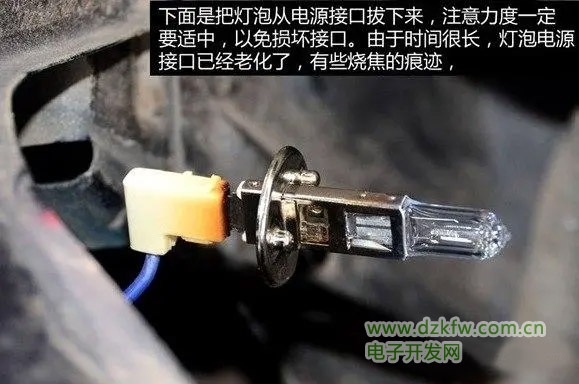 將燈泡的電源插頭接口拔開,拔出燈泡電源插頭接口的時(shí)候,力度要適中,避免將插頭接口接線弄斷,或損壞燈泡插頭,有些車型可能需要到工具。
