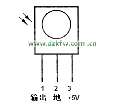 電路包括紅外接收和信號(hào)顯示兩部分。電路使用的紅外接收頭管是集成電路,它里面包括紅外接收二極管、放大、選頻、解調(diào)等幾部分。當(dāng)它接收到紅外遙控器發(fā)射的已經(jīng)調(diào)制的紅外信號(hào)后,經(jīng)過它的接收、放大和解調(diào)在輸出端直接輸出電器的控制信號(hào)。市場(chǎng)上有多種型號(hào)(如SFF-"1506—38、TL1838等)。它將紅外接收管與放大電路集成在一體,體積與一只中功率三極管相當(dāng),密封性好,靈敏度高。它有三條管腳,分別是電源正極、電源負(fù)極以及信號(hào)輸出端,工作電壓在5V左右。紅外接收管TLl838的管腳接線圖如右圖所示。