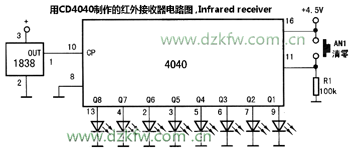 關(guān)鍵字:CD4040,紅外接收電路圖