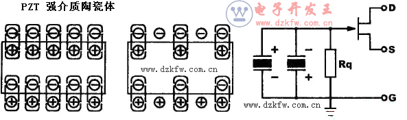 焦耳式體溫傳感器,由于靜電效應輸出阻抗很高,因此基板之一側連接一FET 作為阻抗匹配的電壓隨耦器,工作時需加直流于D極和S 極。