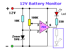 圖6 12V的電池監視器 圖7 低功耗放大器 |