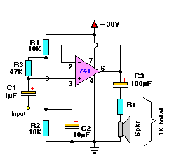 圖4 CA741C,CA741,LM741失調電壓調整電路 圖5 瞬態響應測試電路 CA741C,CA741,LM741 應用電路: |