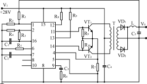 SG3524是定頻PWM電路,采用16引腳標準DIP封裝。其各引腳功能如圖1(a)所示,內(nèi)部框圖如圖1(b)所示。 腳9可以通過對地接阻容網(wǎng)絡(luò),補償系統(tǒng)的幅頻和相頻響應(yīng)特性。根據(jù)試驗結(jié)果,對地接電容就可以實現(xiàn)軟起動功能。