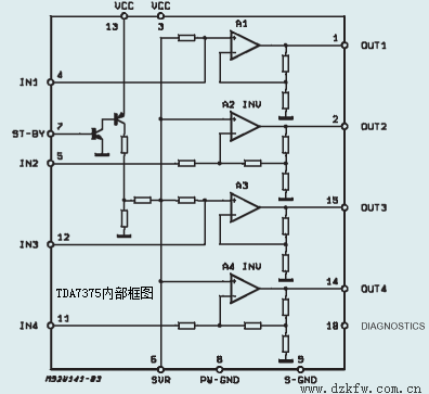 TDA7375內部框圖,TDA7375內部結構原理圖