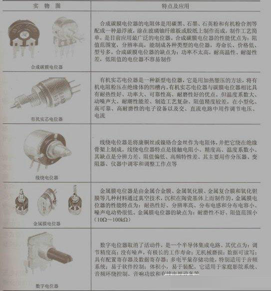 表1:常用電位器實(shí)物圖及應(yīng)用