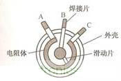 電位器由外殼、滑動(dòng)軸、電阻體和三個(gè)引出端組成,如圖所示。電位器的種類很多,按調(diào)節(jié)方式可分為旋轉(zhuǎn)式(或轉(zhuǎn)柄式)和直滑式電位器;按聯(lián)數(shù)可分為單聯(lián)式和多聯(lián)式電位器;按有無(wú)開(kāi)關(guān)分為無(wú)開(kāi)關(guān)和有開(kāi)關(guān)兩種;按阻值輸出函數(shù)特性可分為直線式電位器、指數(shù)式電位器和對(duì)數(shù)式電位器三種。如實(shí)芯電位器、片式電位器、碳膜電位器、玻璃釉電位器、精密導(dǎo)電塑料電位器和其他電位器。