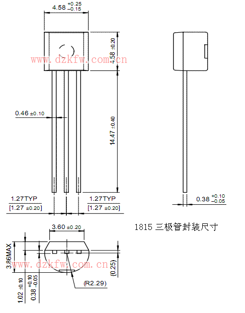因生產(chǎn)廠商不同1815三極管會有不同前綴,如C1815、2SC1815、KSC1815等,其特性一致。