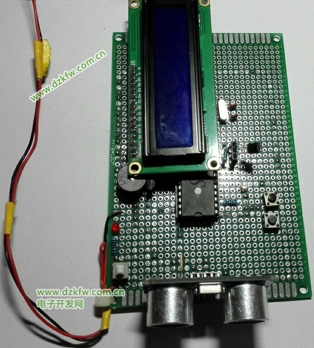 可以測當前距離,當超過閾值距離時,蜂蜜器報警,并且實時顯示溫度數據