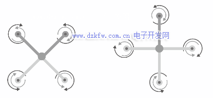 四軸飛行器依據其機身布局結構可分為“十”型和“X”型。