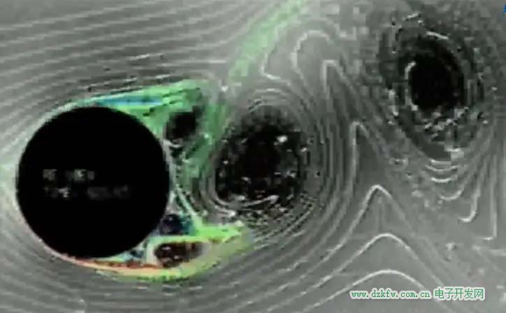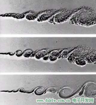再增加雷諾數(shù),阻力還會(huì)有突然減小然后又突然增大的現(xiàn)象。規(guī)律這么復(fù)雜的原因是阻力并不僅僅由粘性力構(gòu)成。在蠕動(dòng)流狀態(tài)下,流體繞球流動(dòng),看起來(lái)前后是對(duì)稱的,其實(shí)并不完全是。前后的流速是對(duì)稱的,但壓力并不對(duì)稱。這時(shí)流動(dòng)阻力主要是由流體與球表面之間的摩擦力造成的。在中等雷諾數(shù)下流動(dòng)為層流,但非定常性可能很強(qiáng)。這時(shí),流體繞過(guò)球后形成規(guī)則的脫落渦,即卡門(mén)渦街: