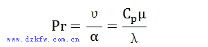普朗特?cái)?shù)是表示流體中能量和動(dòng)量遷移過程相互影響的無因次組合數(shù),表明溫度邊界層和流動(dòng)邊界層的關(guān)系,反映流體物理性質(zhì)對(duì)對(duì)流傳熱過程的影響,其表達(dá)式: