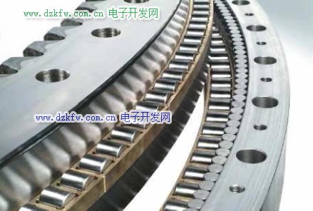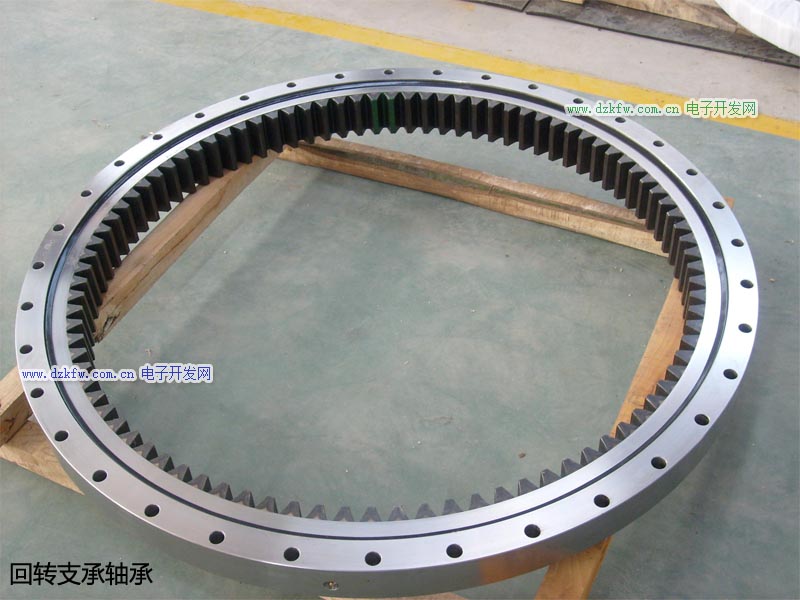 回轉支承,是一種能夠承受綜合載荷的大型軸承,可以同時承受較大的軸向、徑向負荷和傾覆力矩。回轉支承軸承一般帶有安裝孔、內齒輪或外齒輪、潤滑油孔和密封裝置,因而能使主機設計結構緊湊,引導簡便,維護容易。回轉支承軸承有無齒式,外齒式和內齒式的四點接觸球軸承、雙排角接觸式球軸承交叉圓柱滾子軸承、交叉圓錐滾子軸承和三排圓柱滾子復合軸承四個系列,其中四點接觸球軸承具有較高的靜負荷能力,交叉圓柱滾子具有較高的動負荷能力,交叉圓錐滾子軸承的預過盈能使軸承具有較大的支撐剛性和回轉精度,三排圓柱滾子組合軸承由于承載能力的提高引向軸承高度,各種力量分別由不同滾道承受,所以同樣受力情況下,其軸承直徑可大大縮小,因而有使主機更加緊湊的特點是一種高承載能力的回轉支承軸承。回轉支承軸承廣泛用于起重機械、采掘機械、建筑機械、港口機械、船舶機具以及高精度的雷達機械和導彈發射架等設備的大型回轉裝置上。同時也可以根據用戶的具體要求設計、開發、生產各種特殊結構回轉支承軸承。