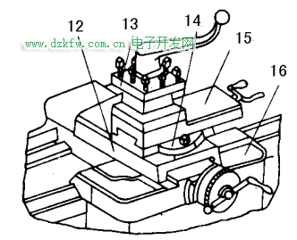 杠;10-床身;11-后床腳;12-中刀架;13-方刀架;14-轉盤;15-小刀架;16-大刀架