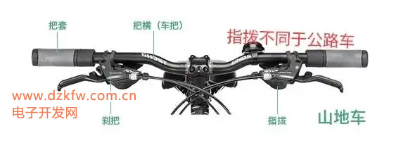 組成部分:車手把(公路車一般為彎把,山地車一般為平把),手把帶 ,剎變把,車頭碗組 ,上蓋 ,龍頭