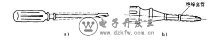 2 )電工不可使用金屬桿直通柄頂的螺釘旋具,在實際使用過程中,不應讓螺釘旋具的金屬桿部分觸及帶電體,也可以在其金屬桿上套上絕緣塑料管,以免造成觸電或短路事故。