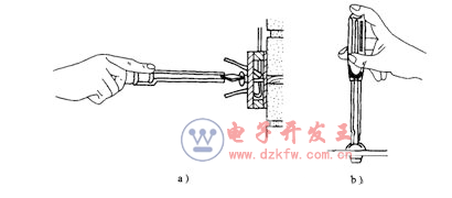 a )大螺釘旋具的使用方法 b )小螺釘旋具的使用方法