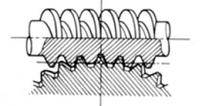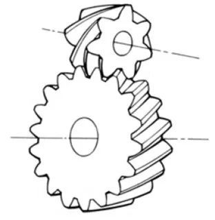 圓柱蝸桿副在交錯軸間傳動時的名稱。可在斜齒齒輪副或斜齒齒輪與正齒輪副的情況下使用。運轉(zhuǎn)雖然平穩(wěn),但只適合于使用在輕負(fù)荷的情況下。