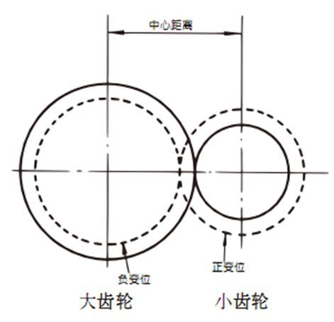 無法改變兩個齒輪的中心距時,對小齒輪進(jìn)行正變位(避免根切),對大齒輪進(jìn)行負(fù)變位,以使中心距相同。這種情況下,變位量的絕對值相等。