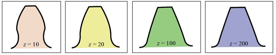 由上圖可以看到,齒數(shù)為10的齒輪,其輪齒的齒根處部分漸開線齒形被挖去,發(fā)生根切現(xiàn)象。但是如果對齒數(shù)z=10的齒輪采用正變位,增大齒頂圓直徑、增加輪齒的齒厚的話,可以得到與齒數(shù)200的齒輪同等程度的齒輪強度。