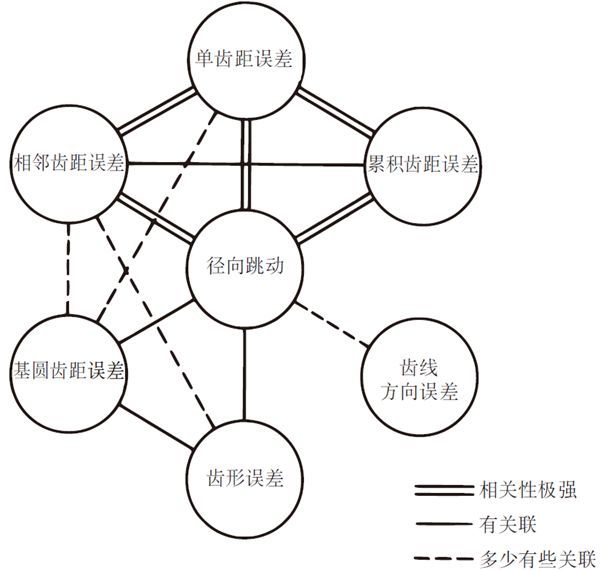 齒輪的各部分精度之間是有關(guān)聯(lián)的,一般來說,徑向跳動與其它誤差的相關(guān)性強,各種齒距誤差間的相關(guān)性也很強。