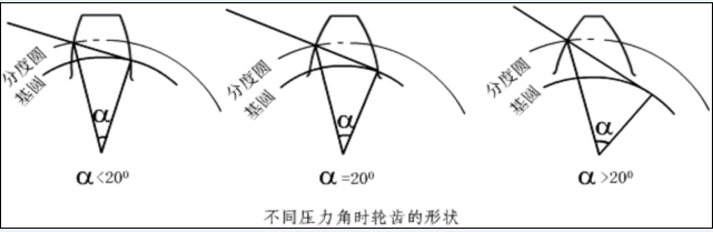 在漸開(kāi)線齒輪中齒廓上各點(diǎn)的壓力角均不相等,離基園越近壓力角越小。漸開(kāi)線齒輪的壓力角通常是指在其分度圓的壓力角,也稱為齒形角,一般在14.5°~25°。齒輪的壓力角是決定齒廓形狀的主要參數(shù),壓力角越小,傳動(dòng)效率越高,輪齒的機(jī)械強(qiáng)度越差;齒輪壓力角越大,傳動(dòng)效率越低,但輪齒的機(jī)械強(qiáng)度越高。從齒輪的互換性、傳動(dòng)效率和強(qiáng)度等方面綜合考慮,我國(guó)齒輪的壓力角取20°。