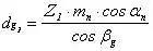 節圓柱上的螺旋角: