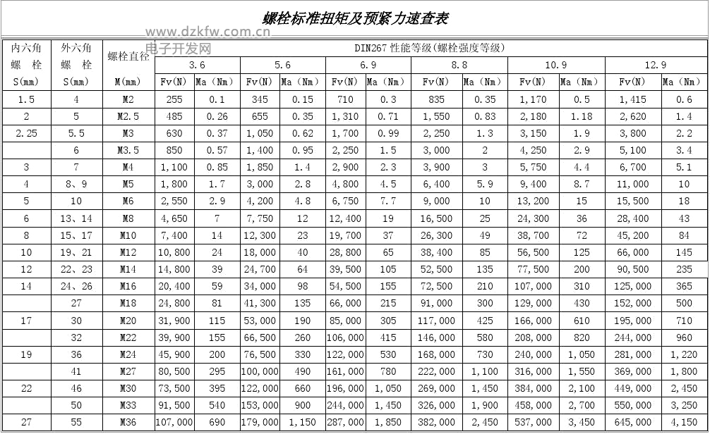 螺栓標(biāo)準(zhǔn)扭矩及預(yù)緊力速查表如下: