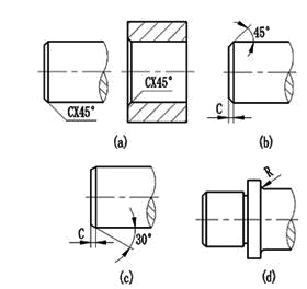 為了便于裝配和操作安全,在軸端和孔端一般都要做成一個(gè)小錐面,以去除銳邊、毛刺。這個(gè)錐面就叫倒角。