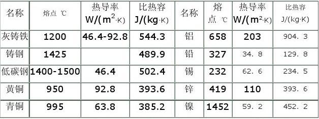 灰鑄鐵、鑄鋼、低碳鋼熔點
