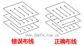 (3)層間布線方向:應(yīng)該互相垂直,頂層是水平方向,則底層為垂直方向,可以減少信號間的干擾。 (4)包地:對重要的信號進行包地處理,可以顯著提高該信號的抗干擾能力,也可以多干擾信號進行包地,使其不能干擾其他信號。