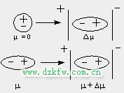 極性分子作用為電場, 使非極性分子產生誘導偶極或使極性分子的偶極增大(也產生誘導偶極), 這時誘導偶極與永久偶極之間形成誘導力, 因此誘導力存在于極性分子與非極性分子之間, 也存在于極性分子與極性分子之間.