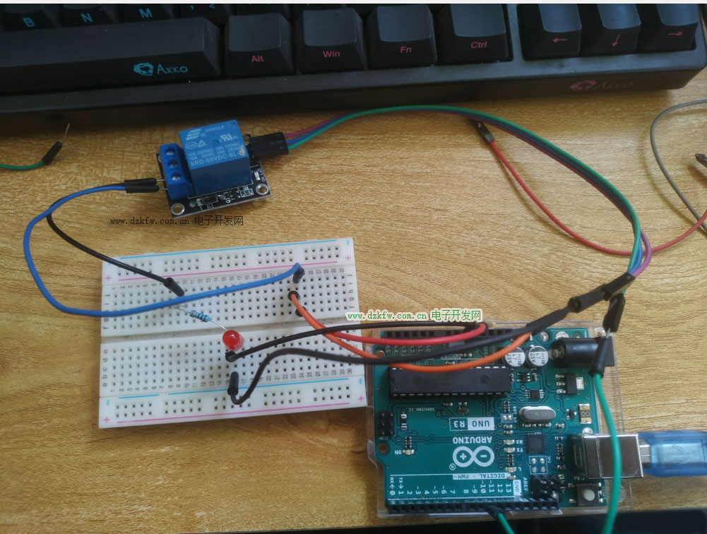 繼電器:信號線接Arduino 10引腳,5伏接面包板,gnd接面包板,公共口接330歐電阻上,常開口接面包板上。