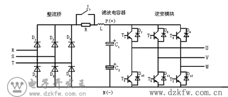 (2)檢查變頻器內(nèi)部的主回路,包括整流橋、IGBT和驅(qū)動(dòng)板。