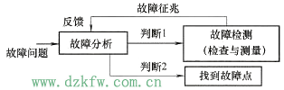 變頻器故障診斷中的基本環節包括了:檢查、分析、檢測、判斷。實際上檢查的目的是為分析奠定基礎,而分析的目的就是要做出判斷,因此也可以認為故障診斷包括檢查、分析和檢測3個基本環節。故障診斷的過程是一個檢查、分析與檢測交錯進行、循環往復、逐次逼近故障點的過程,故障診斷流程圖如圖1所示。