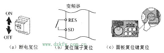 (3)使用操作面板的【STOP/RESET】鍵進行復位,這種方法僅適用于重故障動作后的復位,如圖 (c)所示。