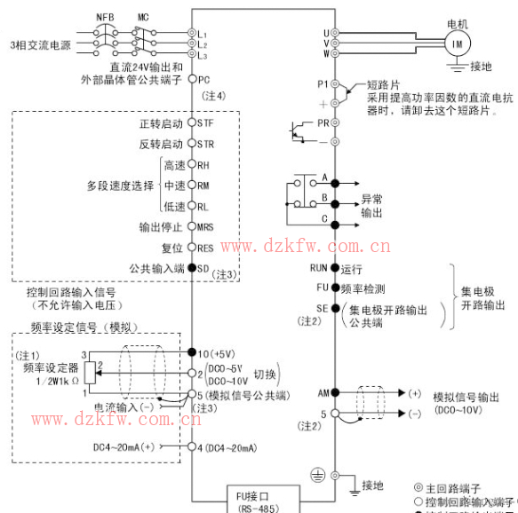 4:外部/PU組合運行模式2,外部輸入運行頻率,操作面板運行/停止。