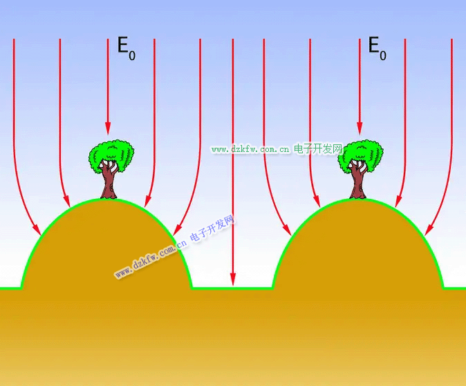 對(duì)于干旱地區(qū),采用高垅溝種是豐產(chǎn)的重要技術(shù)措施,其電動(dòng)力學(xué)模型則為深凹槽的靜電屏蔽原理:在凹槽的兩個(gè)內(nèi)角處,空間電場(chǎng)或大氣電場(chǎng)強(qiáng)度接近零,此處的水分蒸發(fā)速度極慢,因此把植物種植在這個(gè)位置是非常科學(xué)的。考慮到水分的熱蒸發(fā)和土壟靜電屏蔽保水能力的平衡,故建議在旱作農(nóng)業(yè)地區(qū)把植物種植在溝底背陰處最為科學(xué)。如果種植在壟頂,只有那些具有發(fā)達(dá)根系的植物才能生長(zhǎng)。
