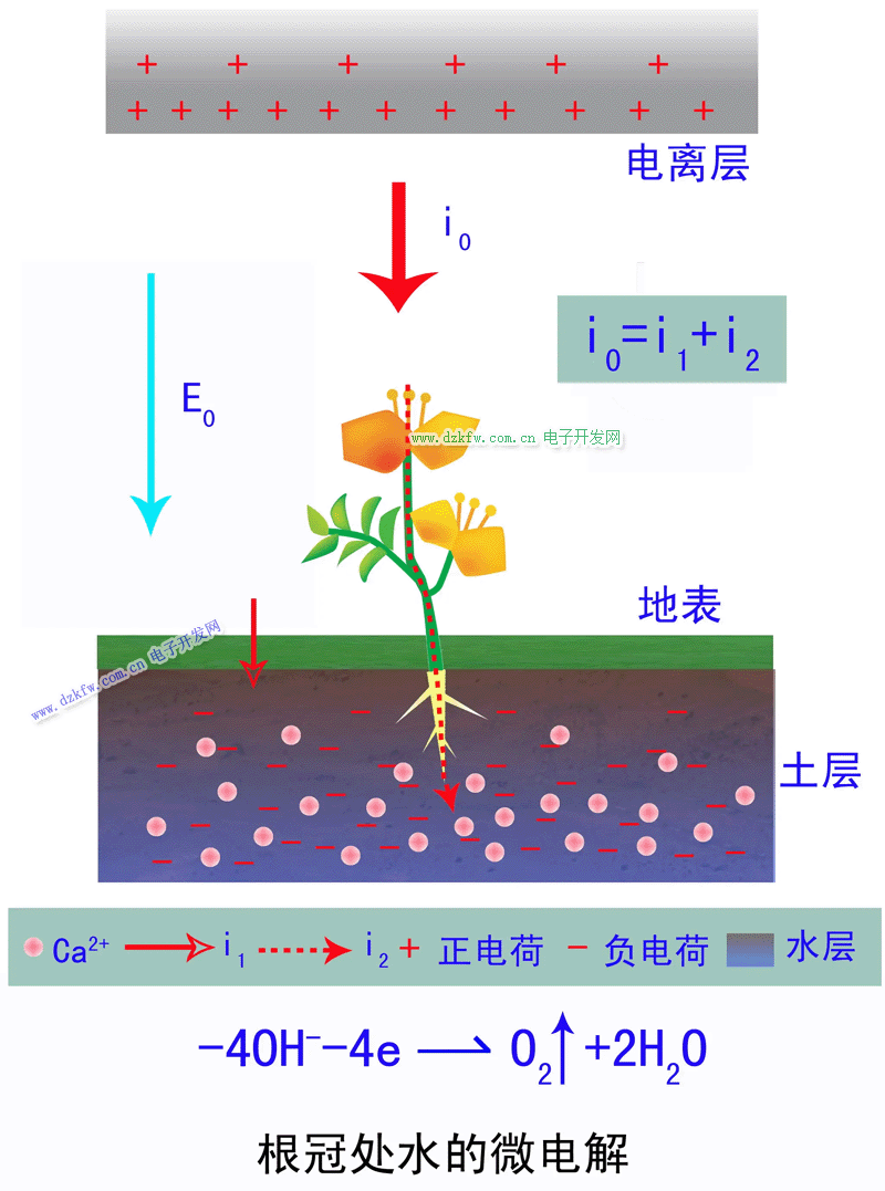 科學(xué)探測(cè)表明我們居住的地球環(huán)境中,地球帶負(fù)電荷、電離層帶正電荷,這樣我們生活的空間就有了大氣電場(chǎng)。通常,晴天的時(shí)候,大氣電場(chǎng)為正向空間電場(chǎng),即場(chǎng)強(qiáng)方向指向地球。這個(gè)空間電場(chǎng)對(duì)生長(zhǎng)于其間的植物具有顯著地生理作用。