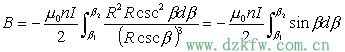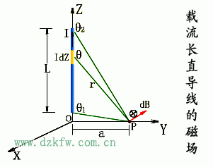 解:建立如圖坐標(biāo)系,在載流直導(dǎo)線上,任取一電流元Idz,由畢-薩定律得元電流在P點(diǎn)產(chǎn)生的磁感應(yīng)強(qiáng)度大小為: 討論:(1)無限長直通電導(dǎo)線的磁場: (2)半無限長直通電導(dǎo)線的磁場: (3)其他例子 |