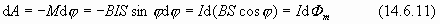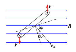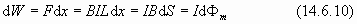 線圈在均勻磁場中受到磁力矩作用,大小為(14.6.8)式。當(dāng)線圈轉(zhuǎn)動dj角度時,因磁力矩做正功時將使j減小,所以磁力矩做功